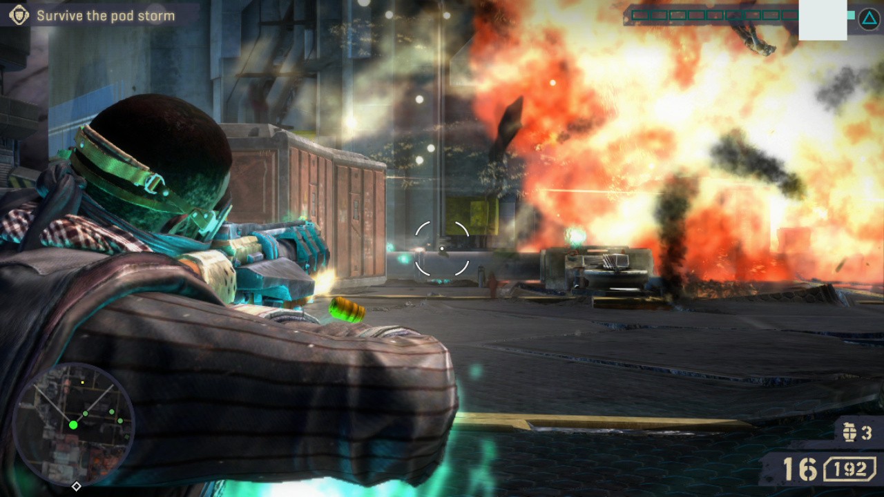 In terms of gameplay criticism, the campaign mode feels held back by the limitations of being based around training players for the online game - the main event, if you will. The limited number of environments is enough to sustain prolonged multiplayer matches as the nature of unpredictable human competition keeps things interesting, but drawn-out battles against bots won't hold your attention for long. We also feel that the combination of different gameplay styles also could have been developed a little further, with more building and weapon choices being a good starting point.