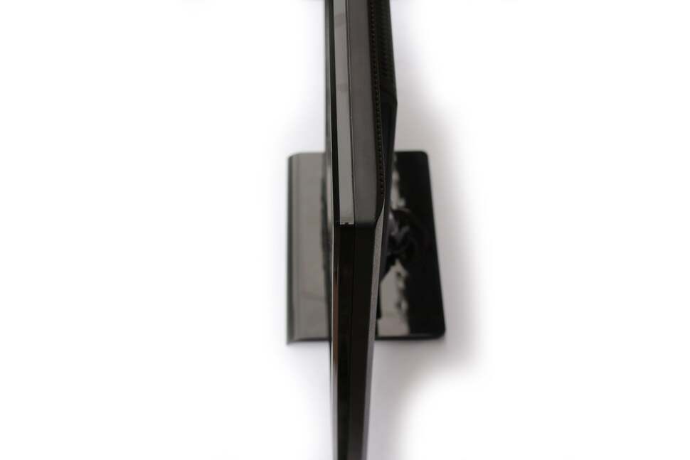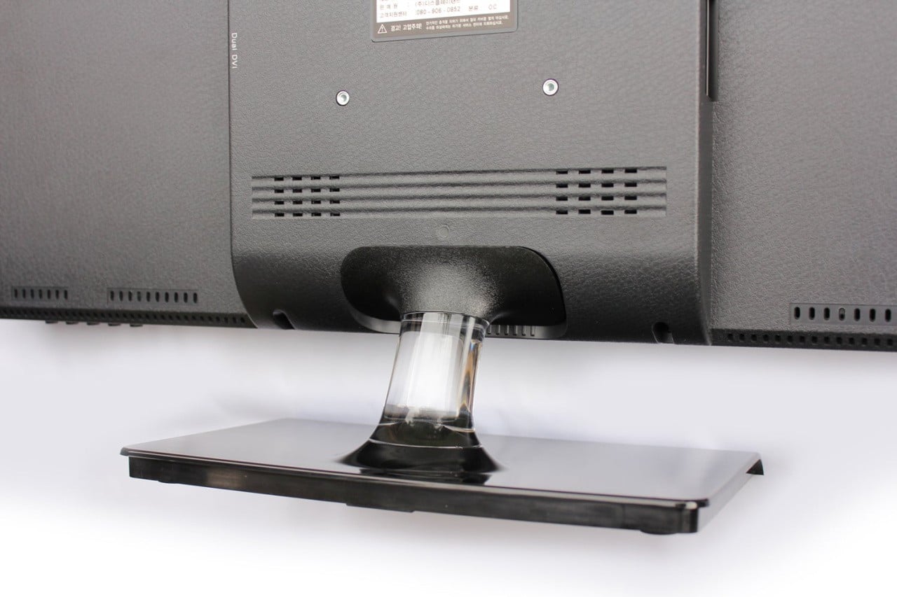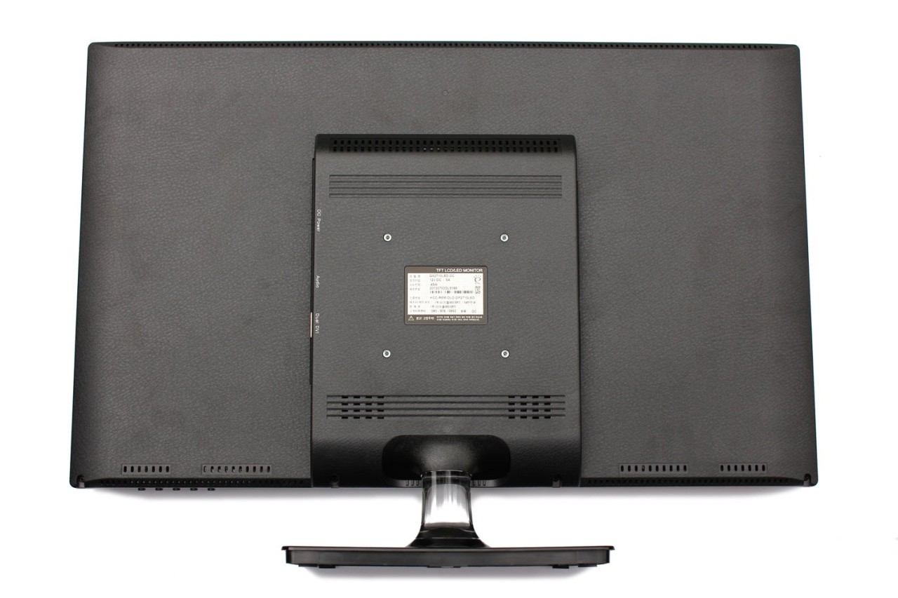 True to its promise, connectivity is limited to just a DVI-D input, a 3.5mm input for sound, and another slot for DC power. Curiously, two 5w speakers are integrated into the rear of the monitor, and though the output is expectedly muffled and lacking in bass presence, it's a welcome bonus to the set-up regardless. Given that crucial features such as OSD controls and a scaler chip are eschewed in favour of the lower price point, it's surprising that this hasn't been cut from the feature-list as well to save a few pennies, but as a last resort this is handy for YouTube viewing, and doesn't bloat the width of the front bezel. Overall, it's a simple, clean, effective design, stripped down to the essentials without appearing too much like a budget solution.