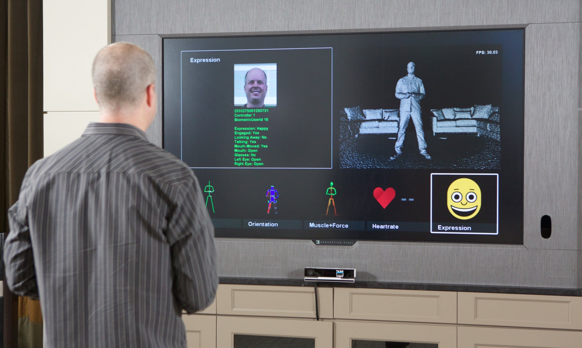 But what really impresses us in the presentation is the ability for Kinect to distinguish between the two men and bring up personalised content. How does it work? We know that Kinect recognises voice commands, but surely it can't distinguish individual voices. It turns out that other sensor data is used to make that determination.