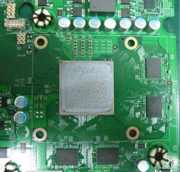 While the single heatspreader underneath the cooling assembly strongly suggests a unified design for the core hardware, the leaker hasn't had the courage to remove it completely and expose the dies below, which would settle the issue completely and would also allow us to ascertain whether Microsoft is using a 45nm or even smaller fabrication process for the unified chip.