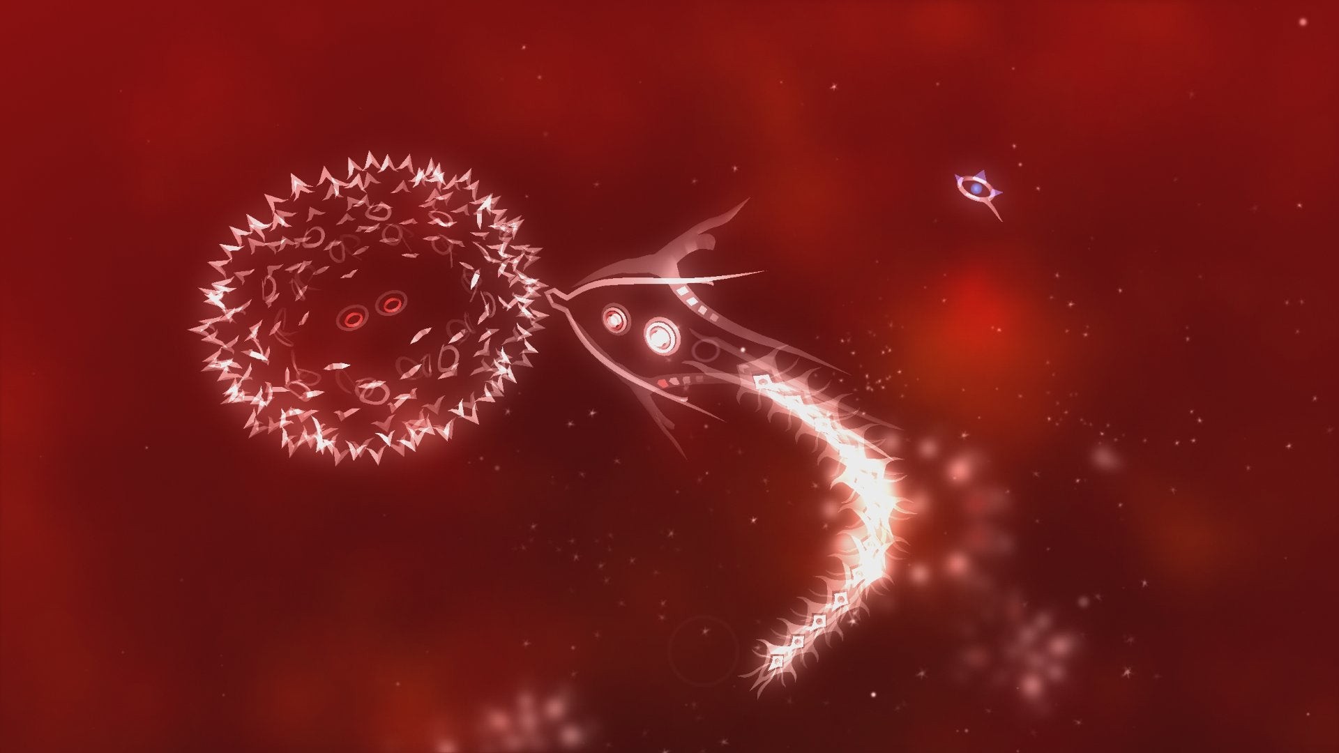 In terms of the overall scope of what's on offer, there are six different lifeforms to take control of, to grow and to guide through the ether. Each has a very different journey to undertake, opening up a host of different visual effects in the background along with a different cross-section of the submarinal wildlife to engage with. At any time, another player can join you for a spot of co-operative play which adds a miniscule element of additional entertainment to the mix but is really little more than an afterthought as the basic experience barely changes at all.