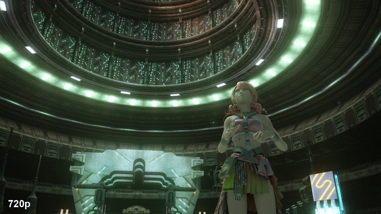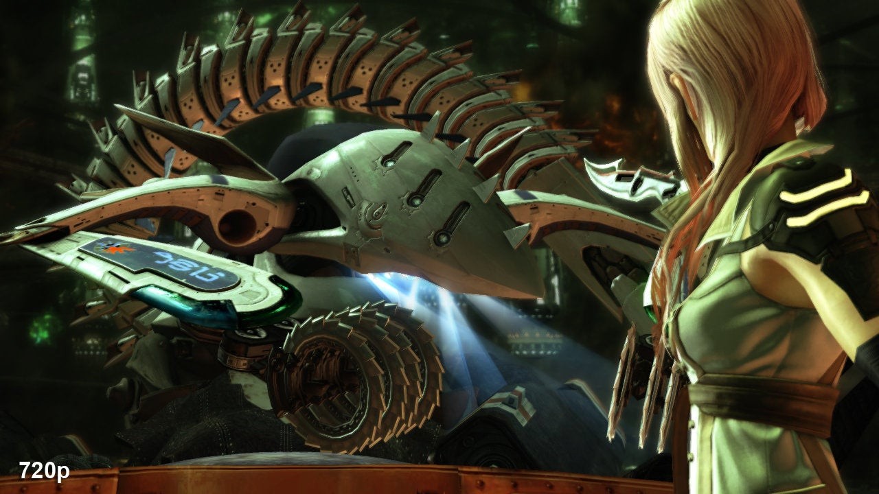 Since most of the time the game is running in 720p mode, it's only fair to show off the quality of the upscaling on the gameplay sections, showing like-for-like shots. If you opt to see the CGI elements at full 1080, you'll need to use the game's in-built scaling the rest of the time. FFXIII produces a generally clean image which blows up nicely.