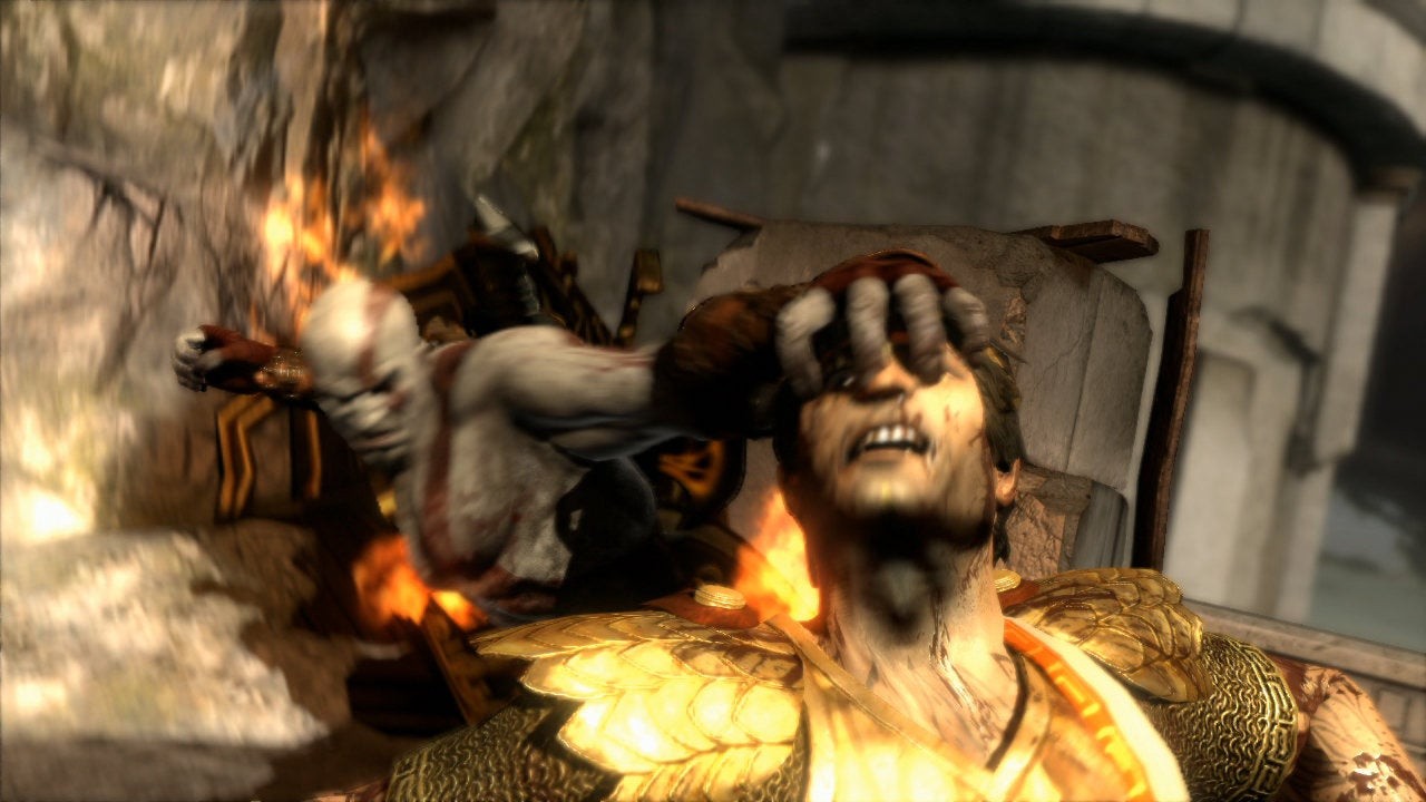 The conclusion of our Gaia video on the previous page - showing Poseidon's sticky end courtesy of Kratos' bludgeoning fists - introduces players to another perspective innovation: first-person kills. As the player completes the rout of a boss character, the viewpoint shifts to the victim, with the entire screen taken up with the Spartan berserker pummelling his now-defenceless opponent. The result is a vicious masterpiece of art, direction and technology.