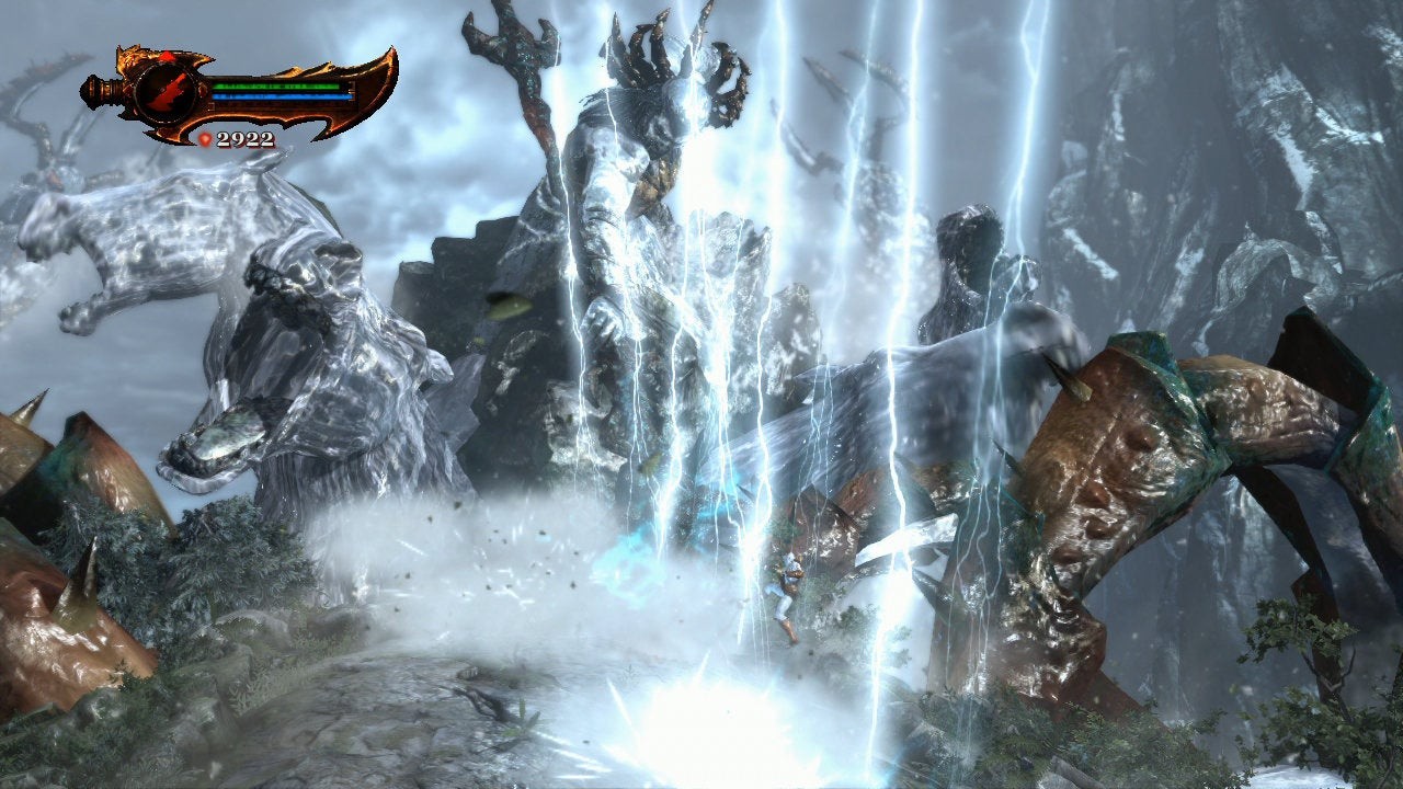 Perhaps part of the solution comes from the data streaming system running continuously in the background. Once you're in gameplay, God of War III has no pauses for loading whatsoever, and runs with no mandatory hard disk installation, in common with most Sony first-party games. Everything is being streamed from BD to system memory in the background.