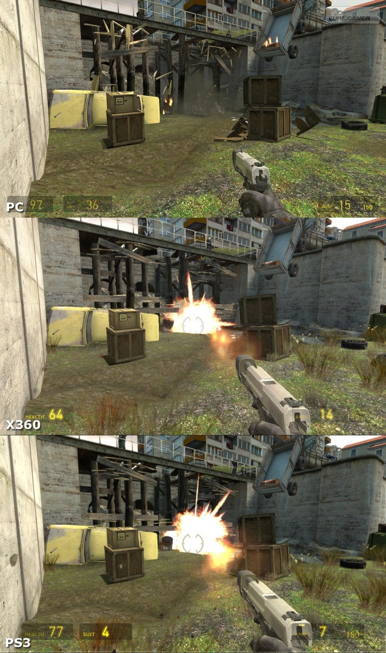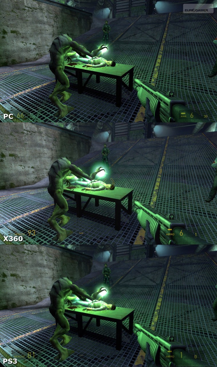 In putting together the face-off, one thing is supremely obvious. These are PC games that work best on the original platform. Get the game running on a decent LCD or Plasma, kit yourself out with a decent graphics card and you're going to get an experience that utterly annihilates both console versions. Indeed, even my lowly 1.5GHz dual core laptop with a low-power 128MB nVidia 8400M GS ran the resource draining Episode 2 fairly well once the video settings had been appropriately tweaked - astonishingly it actually performed better than the same game running on PlayStation 3. Also, having worked with the console versions for some weeks, returning to the PC version was a revelation; the level of precision afforded by the mouse and keyboard combo is untouchable and this is definitely the way the games were meant to be played.