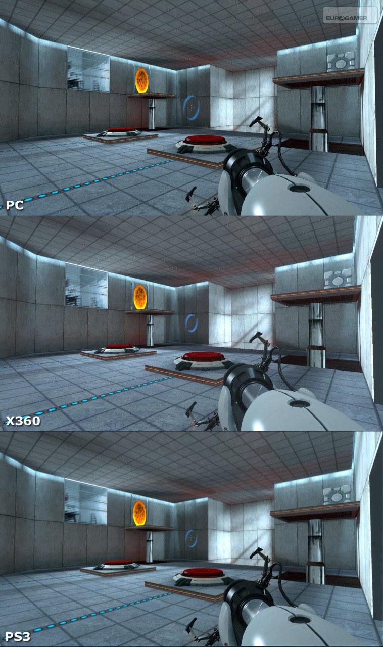 The experience of playing Portal is pretty much consistent cross-platform, but this is not necessarily such a good thing. You get the idea that the Xbox 360 version didn't get the same level of optimisation as the core Half-Life games and despite what must surely be a far lower level of detail compared to Episode Two, it doesn't seem to run as smoothly. Thankfully, Portal isn't the kind of game where its appeal is directly linked to a smooth update or ultra-precise response from the joypad, but it is interesting to see that both 360 and PlayStation 3 versions essentially perform as well as each other here.