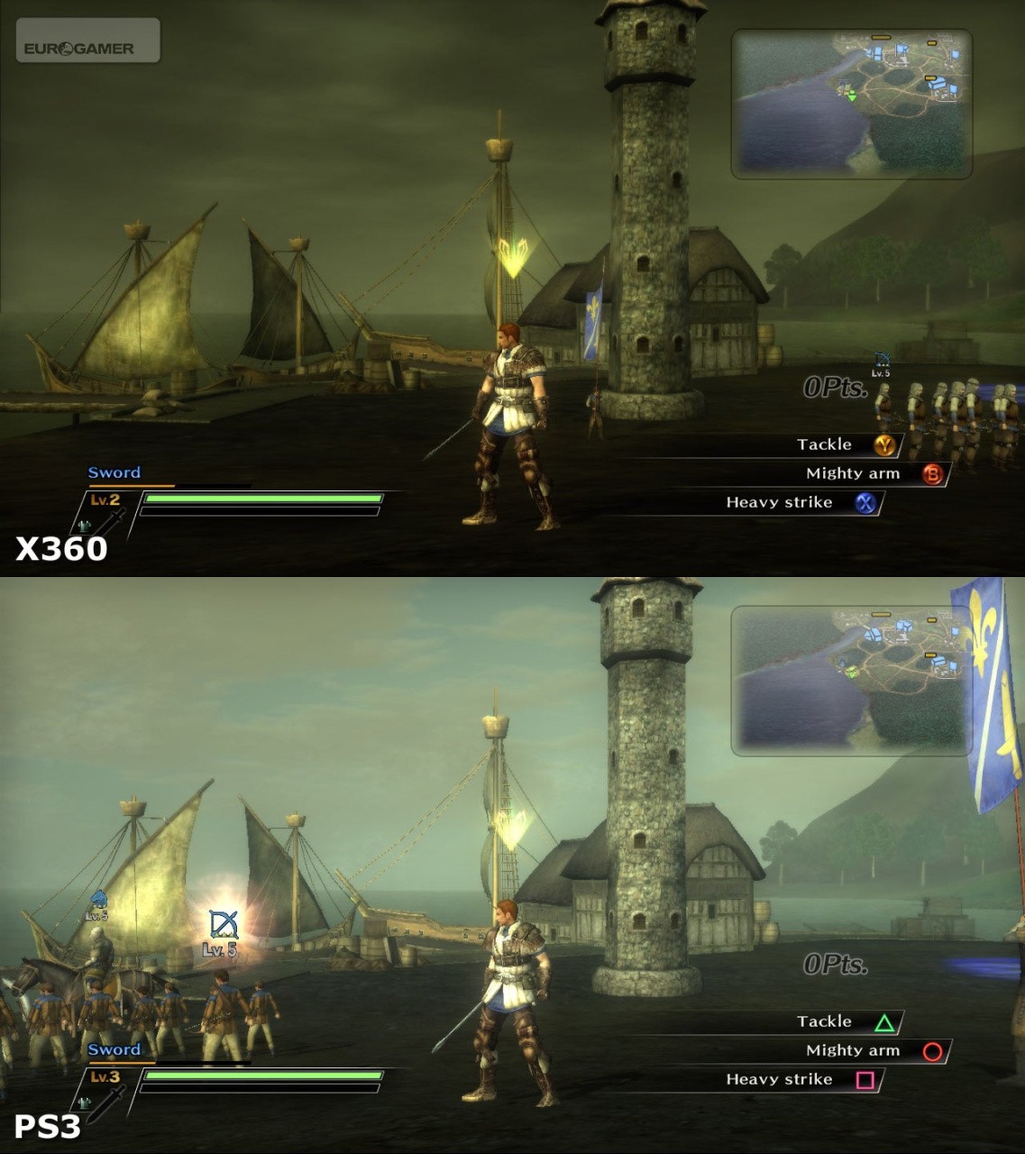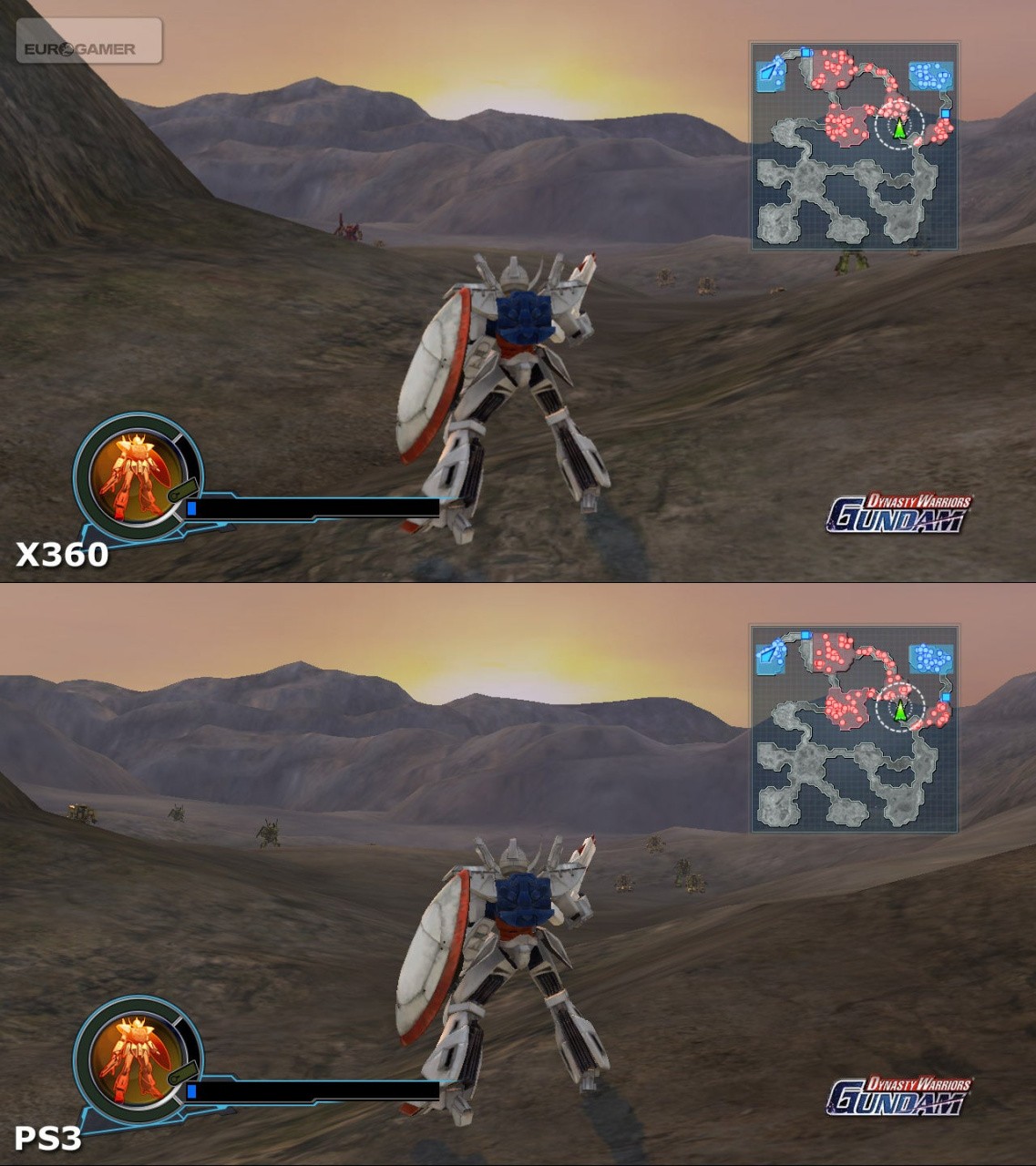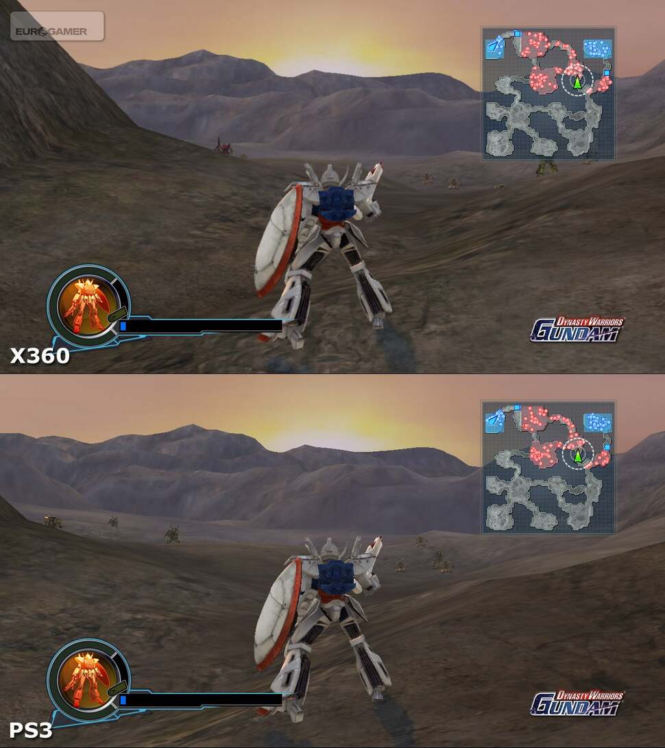 Just like Bladestorm - Koei's other cross-platform release - there really is very little to tell the Xbox 360 and PlayStation 3 versions of the game apart. The same core experience of ripping hundreds of opponents to shreds with contemptuous ease is identical on either machine and the graphics are like for like too. The only slight difference is with Xbox 360; slightly softer edges here with what looks like a very subtle blur being applied to the visuals as opposed to proper anti-aliasing. I can't say it's hugely attractive, nor really required (the PS3 game looks fine as is) but the impact isn't anywhere near as heavy-handed as the Vaseline effect employed on many PlayStation 3 conversions in the absence of 'real' AA.