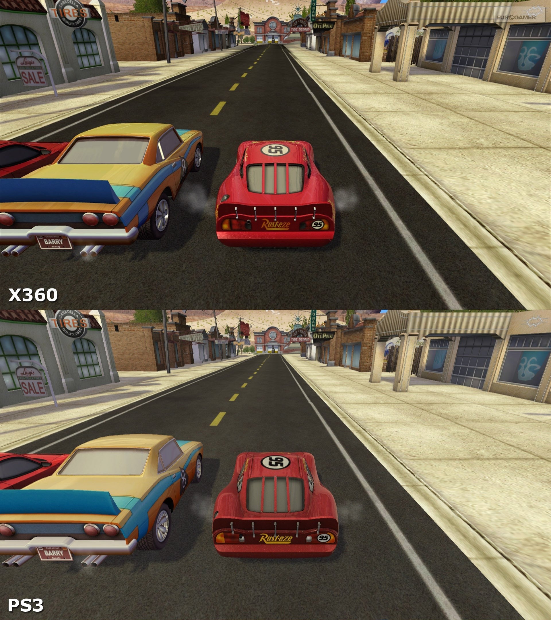 Cars: Mater-National on the other hand is simply an abysmal failure, equally abhorrent on both PS3 and Xbox 360. Of course there are differences, but the fundamental, head-slappingly poor gameplay comes as standard with both versions.
