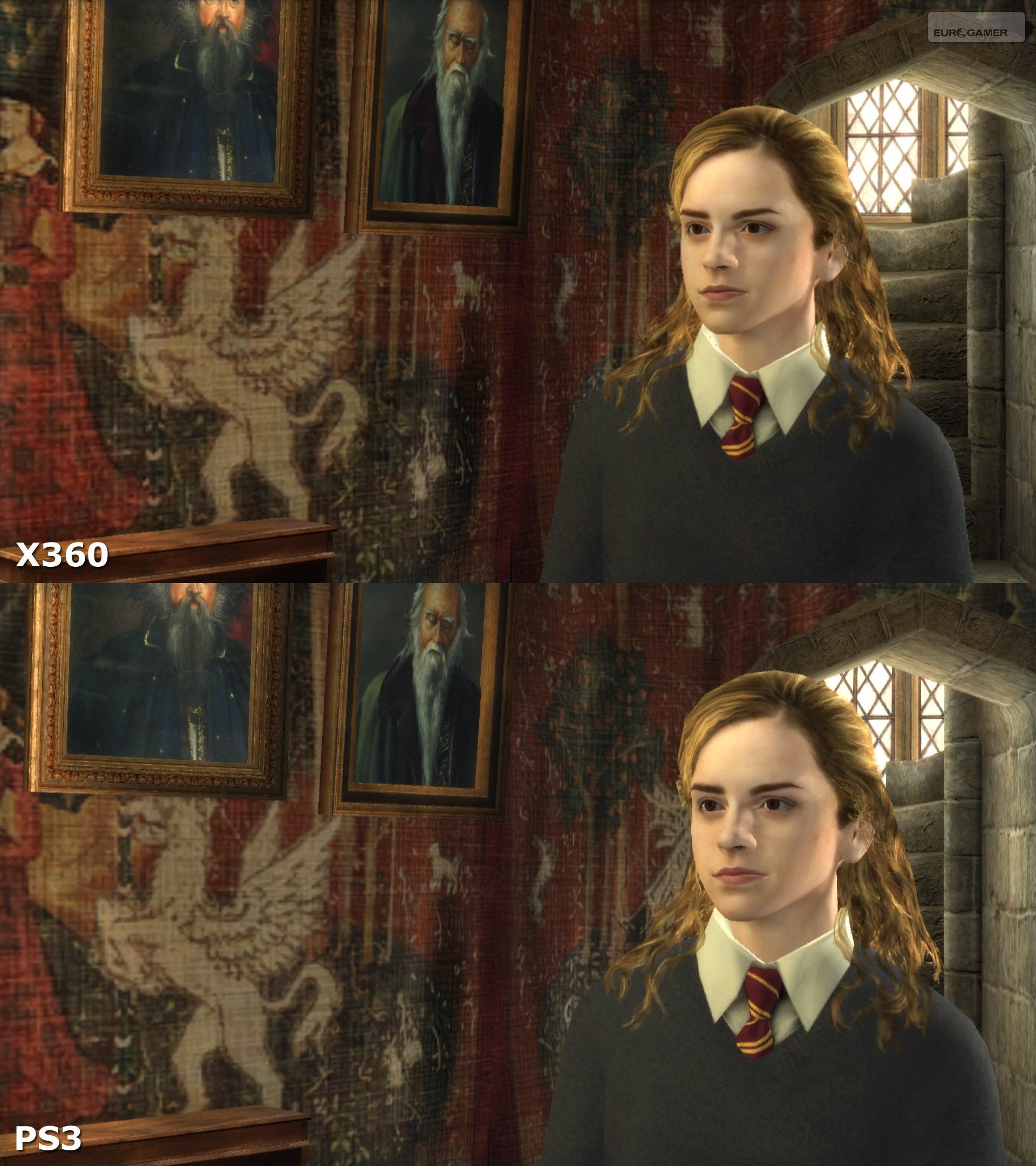 Graphically, PlayStation 3 manages to impress over a slightly disappointing Xbox 360 effort. When the game is set to 720p, it's running at full resolution with anti-aliasing. Curiously, on Xbox 360, there's no anti-aliasing readily apparent. Instead the developers have chosen to cover the entire screen with a soft blur. The end result is that while the 360 game feels smoother in terms of frame rate, PlayStation 3 looks significantly better - especially in the detail-rich areas of the game such as the Hogwarts interior. Being a third person adventure game with only a modicum of actual action, the detail over frame rate trade-off pays off here in PS3's favour.