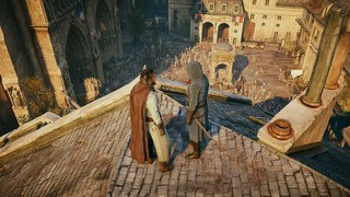 Here, I found Unity presenting with far fewer LOD pop-in problems. NPC crowd density is higher with far superior draw distance. Volumetric atmospheric rendering seems to present in a more convincing way than the final game. Both conferences show an Ubisoft staffer playing the game, while the wobbly frame-rate (between low 20s to mid 30s) does suggest a real-time experience.