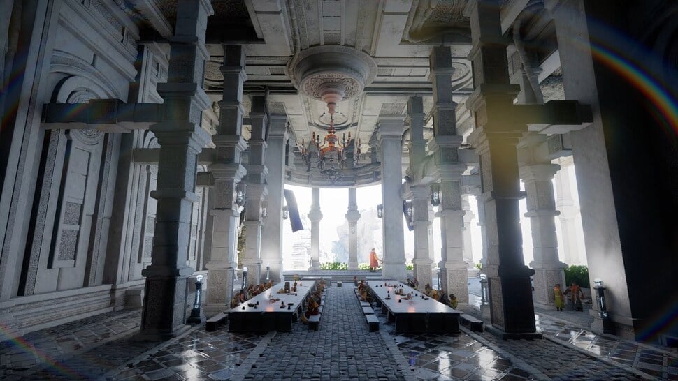 Ray-traced global illumination is key here, used across the board in both indoor and exterior environments. Crucially, this appears to be a per-pixel solution rather than a probe-only or probe-driven hybrid system, delivering convincing bounce lighting and nuanced indirect global illumination, with believable contrast.