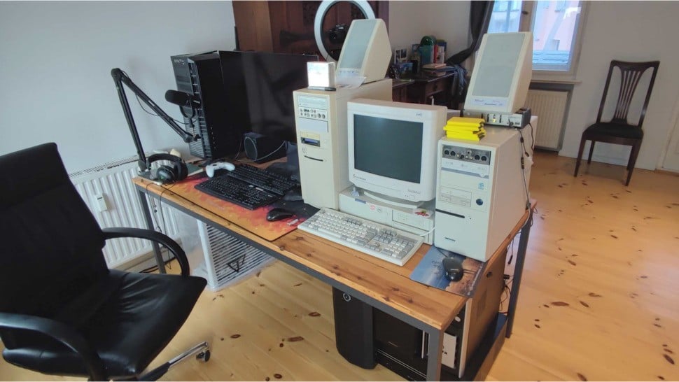 To cover a similar aesthetic and to deliver the functional usage I now need, I chose the 80x190cm Bamboo desktop surface as offered by Flexispot for the e7 series. It has roughly the same colour and wooden surface but I lost 10cm of desk depth. Thankfully, this wasn't an issue. As you can see from my original desk image, I did not even use the 10cm advantage in any way - the retro PCs and peripherals parked on top were leaving much space at the back, even more than 10cm.