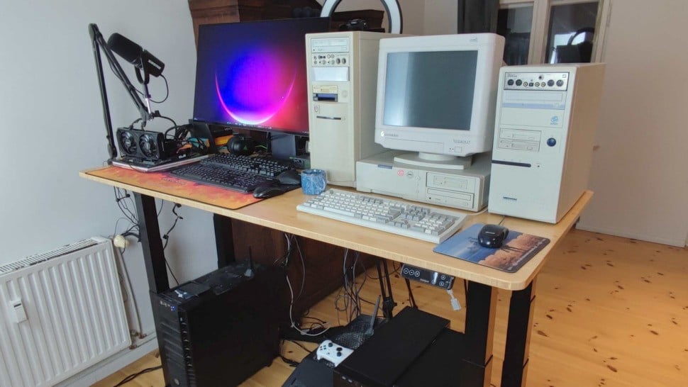 Another consideration in choosing the desk was how much weight it could bear. I had over 100kg of equipment on my previous stationary sitting desk, with much of the weight taken up in a lopsided arrangement where lightweight modern objects were on the left half and the heavy-duty retro steel cases and CRT were on the right. I was going to continue this set up style so I made a purposeful decision – I opted for the Flexispot E7 Plus instead of the E7 Pro.