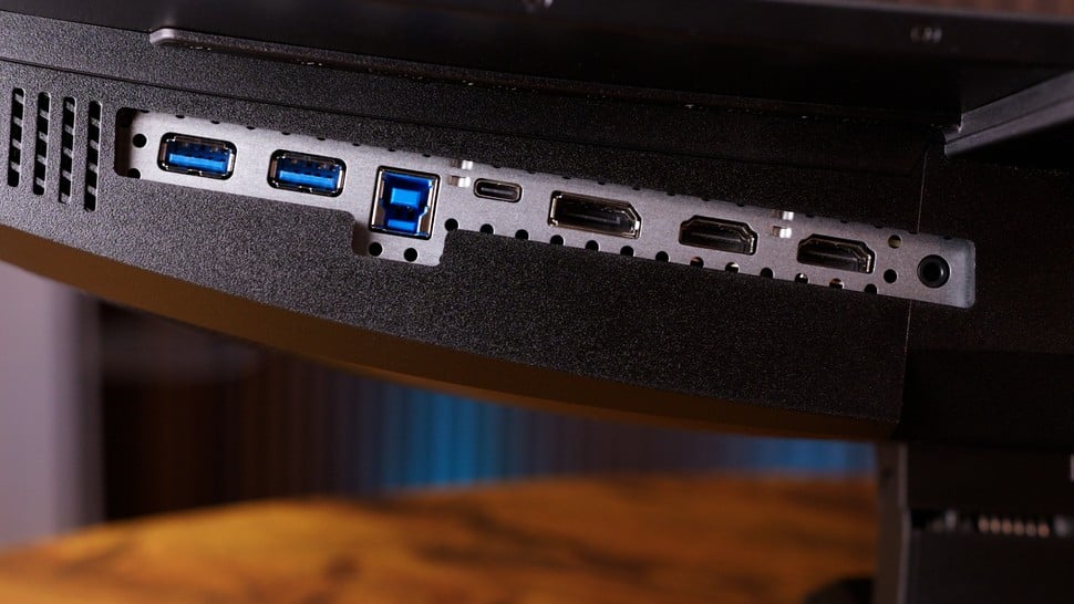 Let's talk specs. Just like its predecessor (the 341CQP), the 341CQR opts for a curved, ultra-wide format. It pushes a 3440x1440 resolution, and hits a DisplayHDR True Black 500 standard. However this time, MSI's new panel adds an extra flourish in the form of a 360Hz refresh - over double that of the 175Hz peak of its last model. To drive that combination of resolution and high refresh, you have a bevy of inputs with sufficient bandwidth. That includes two HDMI 2.1 inputs, one for DisplayPort 2.1a (with UHBR13.5 tier bandwidth), and a USB Type-C port with up to 98 watts throughput to power a connected laptop, for example.