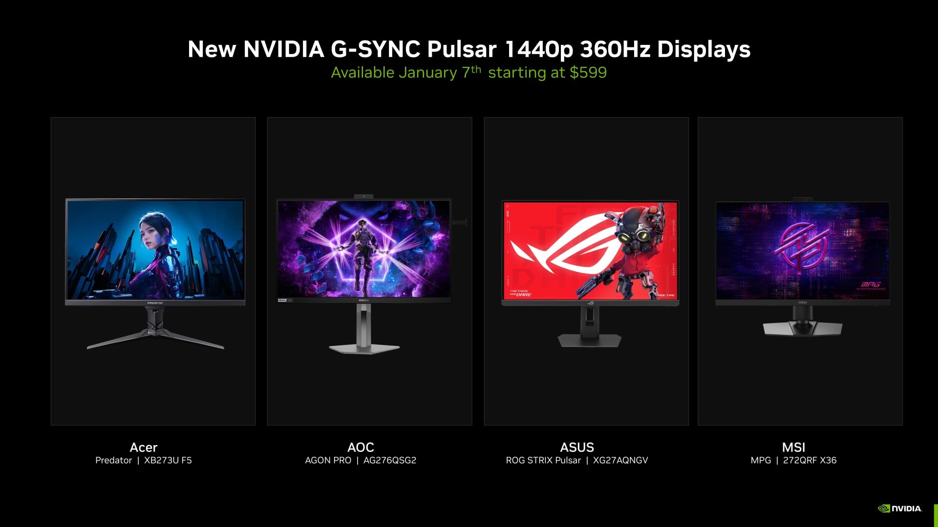 As of right now, the biggest limitations to the technology are made clear by the initial rollout. All of this month's models are 27" screens at 1440p resolution maximums, and all use IPS LCD technology, not OLED. Nvidia suggests that larger and more pixel-dense screens are inherently supported by their Pulsar technology - and what's more, we've been told that per-scanline adjustments with every scanline being its own backlight section should be possible.