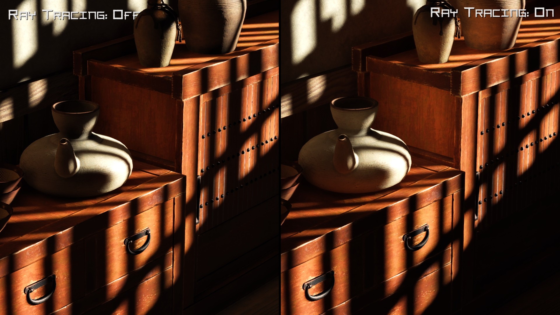 Digital Foundry: I'm impressed with the fidelity you're getting using probes. You probably saw the example that I use in the video, with those little pots, with the sun shining in. It really gave you this per-pixel level of detail on the GI bounce which was really precise. Usually when using ray tracing with a probe system like that, you don't usually get that kind of precision, I find.