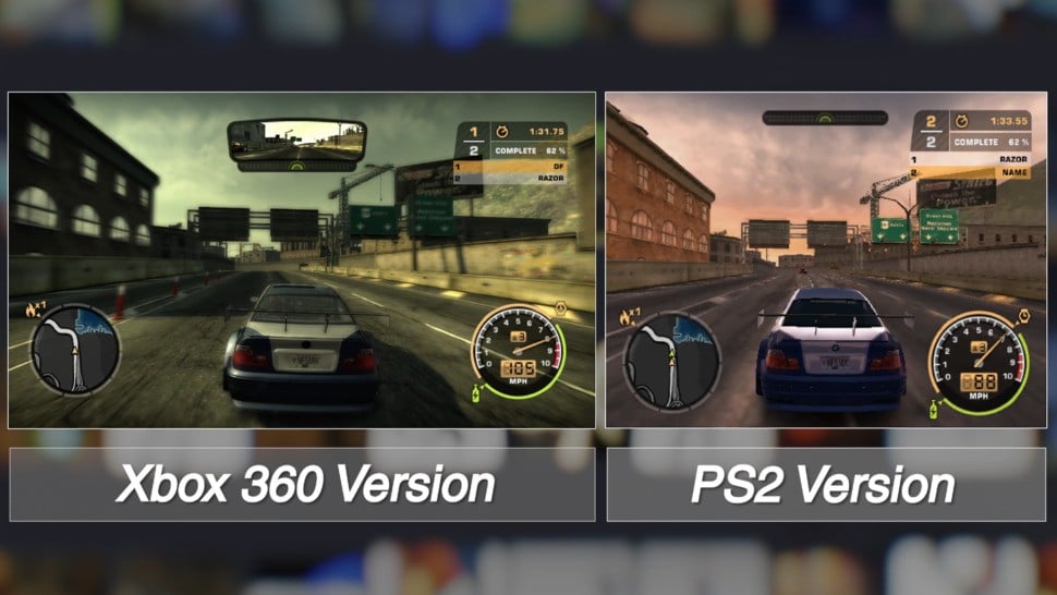 Need for Speed: Most Wanted: While this Need for Speed sequel launched on a ton of platforms, including PC, prior-gen consoles and handhelds, this Xbox 360 version sported unique effects like a HDR lighting pipeline, more advanced shaders and higher-fidelity shadows. This unfortunately resulted in a visual profile affected by a harsh yellowing effect, something we would see in other 360 games over the course of its lifespan. Even the default PC version lacks some visual flair seen on the 360 version - though modders have restored the 360's edge to the PC version in the years since.