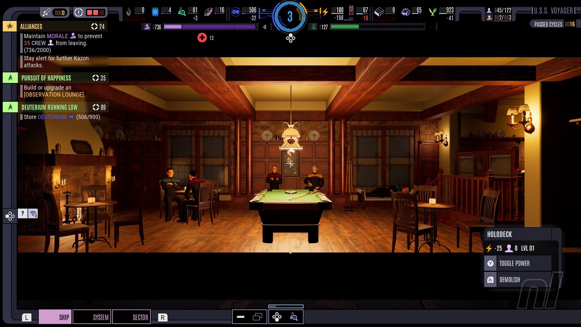 Expedite research into different fields. New technologies and improved layouts will not only strengthen the ship but also boost your crew’s morale. Exotic and dangerous research, like the technology of the Borg, is also within your reach. As captain, will you embrace it for the potential it offers, or will you omit it for the dangers it presents?