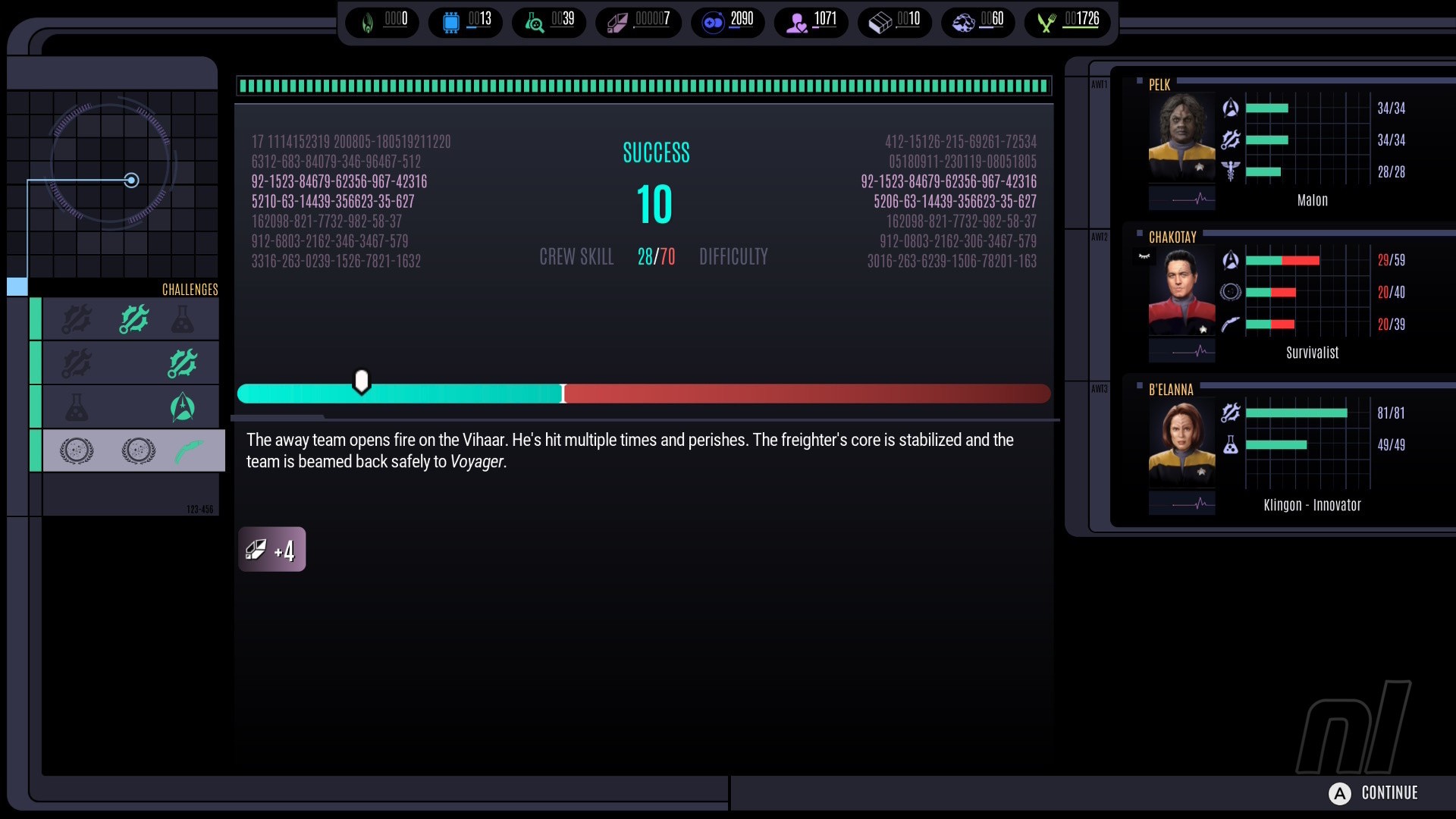 When diplomacy fails, the U.S.S. Voyager and its crew are ready to enter ship combat at your command. From the bridge, you give commands for offensive and defensive maneuvers, targeting enemy ship systems and using special weaponry. And even during ship combat, the individual skills of your crew members come into play: Assign battle stations to crew who bring precious skills to the table and trigger them in crucial moments to maximize your combat effectiveness.
