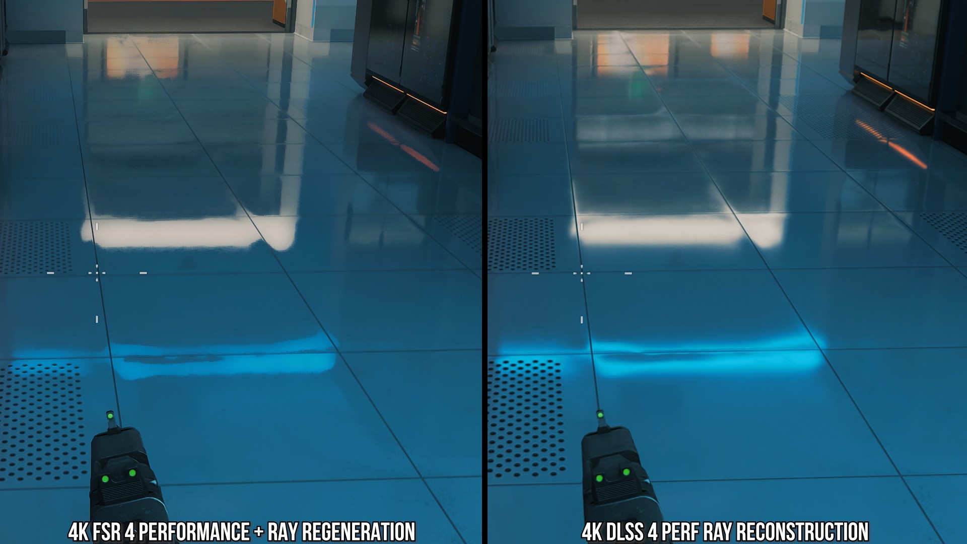 Still, we can't help but believe that AMD Redstone, like AMD Frame Generation before it, has somehow launched in a work-in-progress state. We draw that conclusion in part because its reflections are missing a key real-life attribute: a narrowing of fine detail at the point of reflective contact, followed by increasing reflection blur as the distance widens. This issue breaks much of the inherent realism of a quality ray-traced reflection model, with this concept of "contact hardening" being inherent to the look.