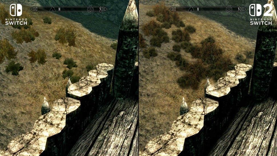 Speaking of, we can confirm that Skyrim Anniversary Edition on Switch 2 is capped to a 30fps frame-rate - a disappointing count for a game whose vintage dates back to the early Xbox 360 era. But it at least sticks more cleanly to that frame-rate than the prior Switch port. Still, we hope we may one day get options to either unlock the Switch 2 port's frame-rate or reduce settings and possibly reach a VRR-friendly 40fps frame-rate or higher.