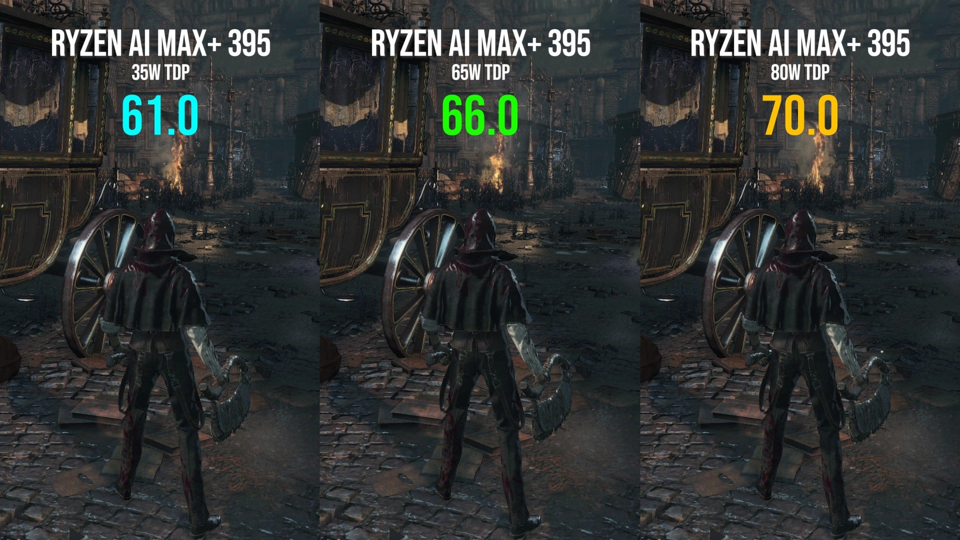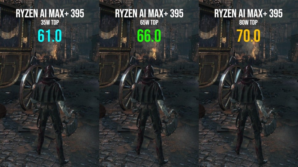 But we can go further, of course. Upping processor TDP from 35W to 65W gave us an eight percent boost, rising to circa 17 percent comparing 35W to 80W. It seems that the efficiency sweet spot is at around 35W, which would give us just about two hours worth of playing time on the GPD Win 5's supplied battery. 720p looks fine on Ally X, but 1080p does shine and it's an even more remarkable experience than running the game on the Asus/Microsoft portable. Bearing in mind that Strix Halo fully unlocked gives us performance roughly in line with an RTX 4060, this also bodes well for ShadPS4 Bloodborne play on more mainstream desktop PCs.