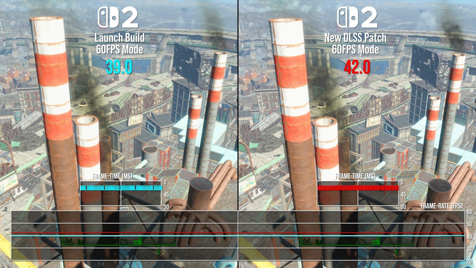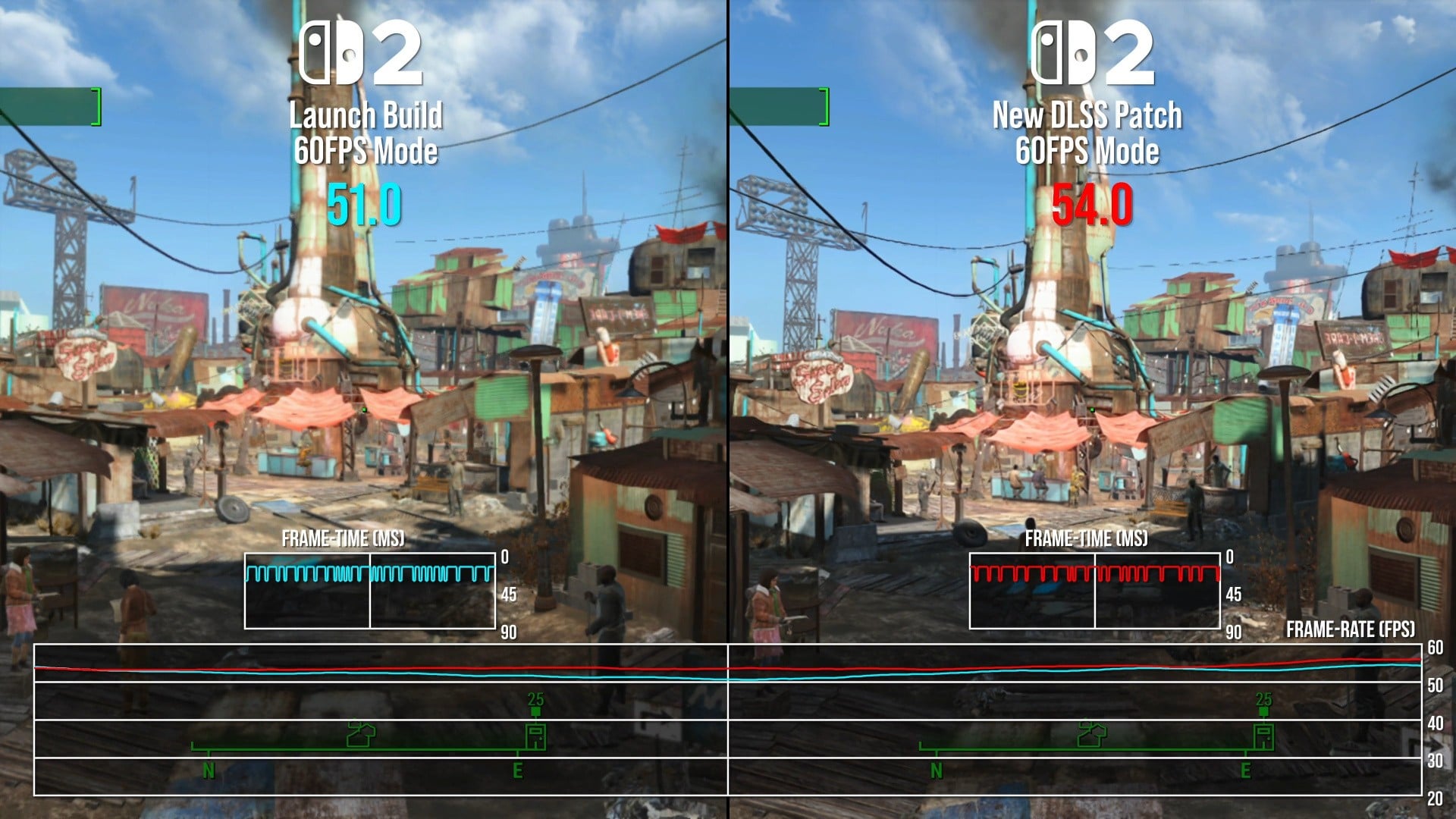 Arriving in the evening before we were due to tape DF Direct Weekly #257, Bethesda and Sumo Digital have proven true to their word, adding DLSS upscaling to the already impressive Fallout 4 port for Nintendo Switch 2. In replacing the existing TAA with its associated blur, DLSS should be the dream ticket in making a good conversion even better, but the improvement turns out to be a little more modest than we hoped. There is a boost to image quality and performance - albeit limited - but the core bottlenecks in the game remain as-is, with DLSS failing to bring the game-changing improvements many might have hoped for.
