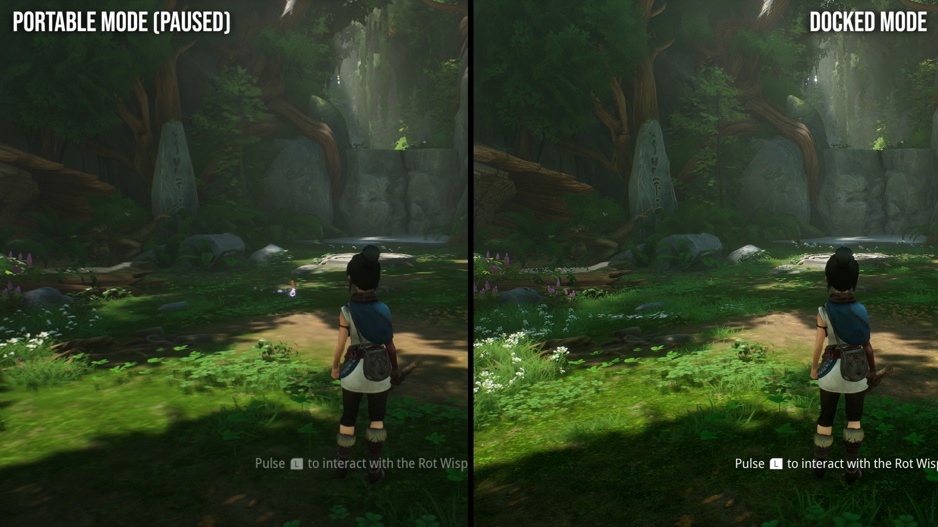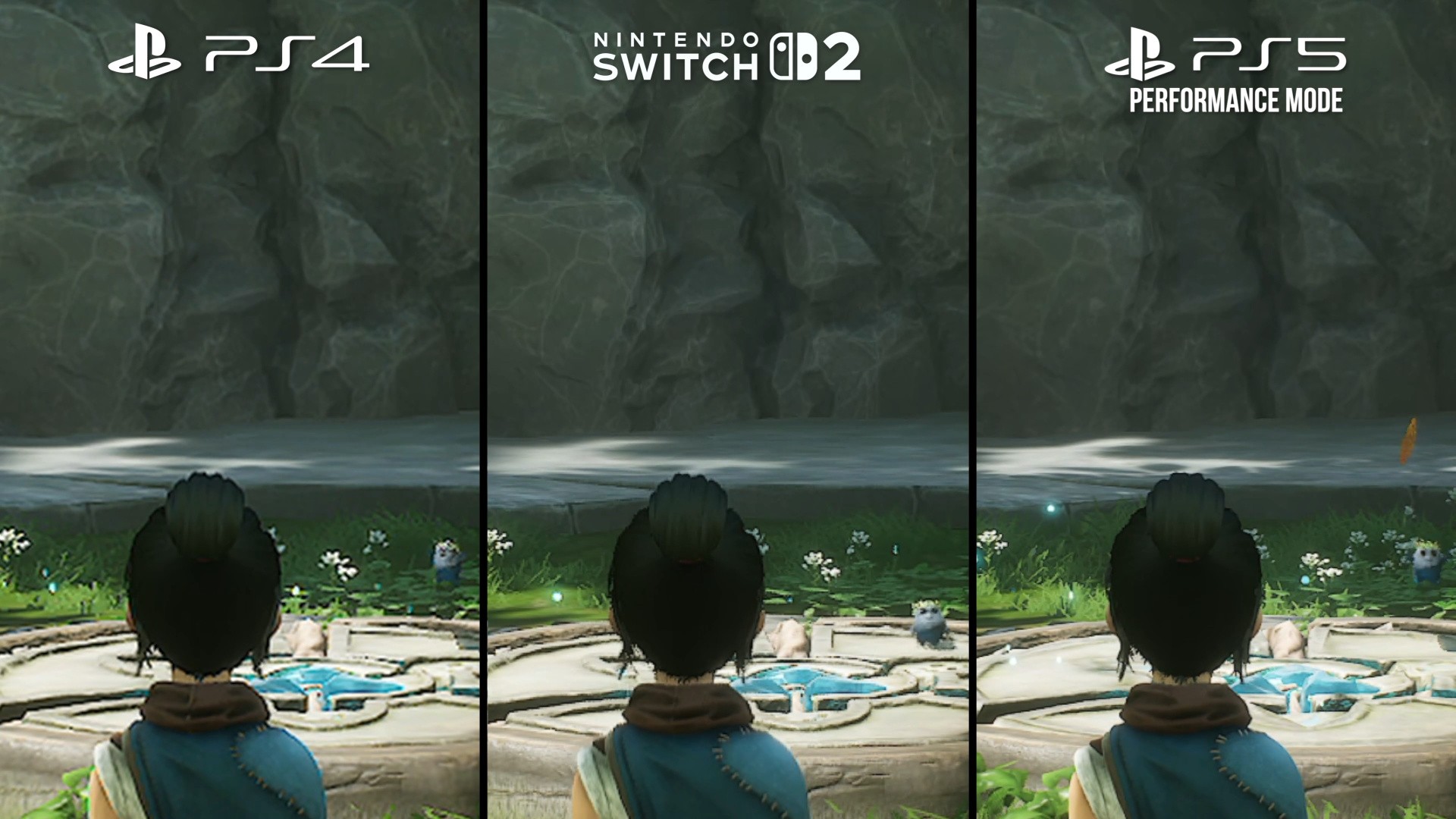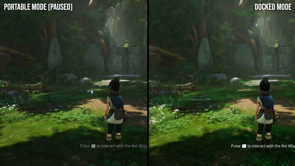 The pill would be easier to swallow if the port retained more of the visual charm of the PlayStation 5 version, but again, Kena comes up short. When playing docked, Switch 2 runs internally with an 864p resolution, seemingly using the "tiny" DLSS upscaler. Compare and contrast with the base PS4 running at 1080p with TAA, with PS5 pushing higher still. It's unrealistic to expect PS5 quality visuals, but the surprise here is that there are cutbacks compared to the PS4 version, with foliage density the most obvious compromise.