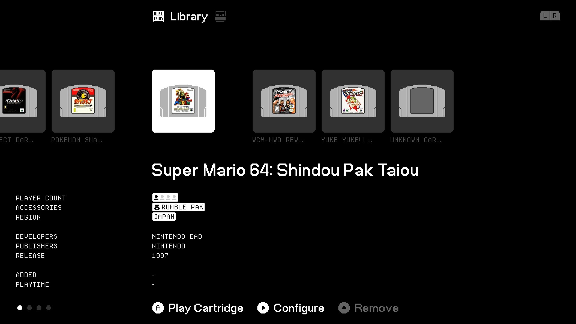 Original accessory support is mostly stellar. The mouse, the GB transfer pak, even that rare Japanese shogi cartridge with a modem: we've yet to plug any controller-port gamepad or controller-expansion accessory into A3D and run into issues.