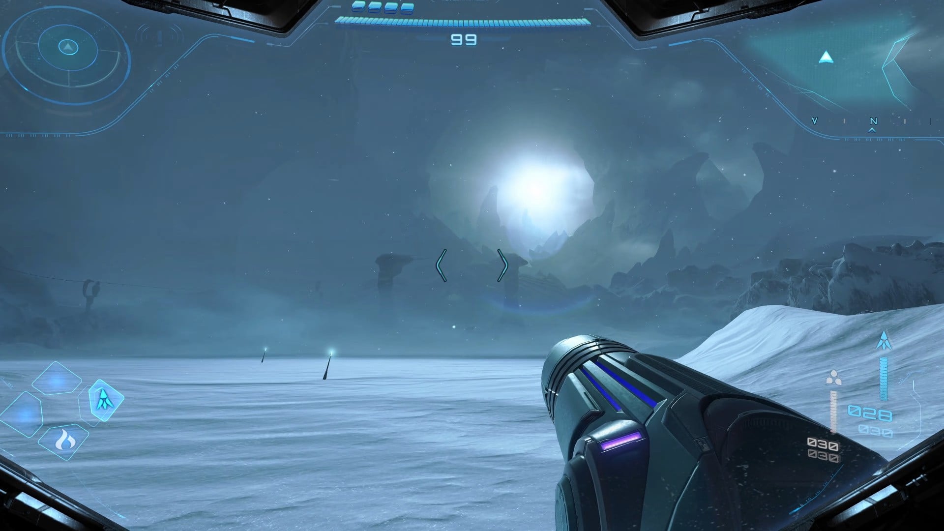 After an initial sequence where Samus defends an alien assault on a human research station, players are teleported by a mysterious artefact to another world - an expansive, sandy wasteland known as Sol Valley. Here, players begin the true adventure: ride a motorcycle across this strange, new planet, then disembark to explore on foot - or, of course, morph ball - and find five keys hidden in five distant zones.