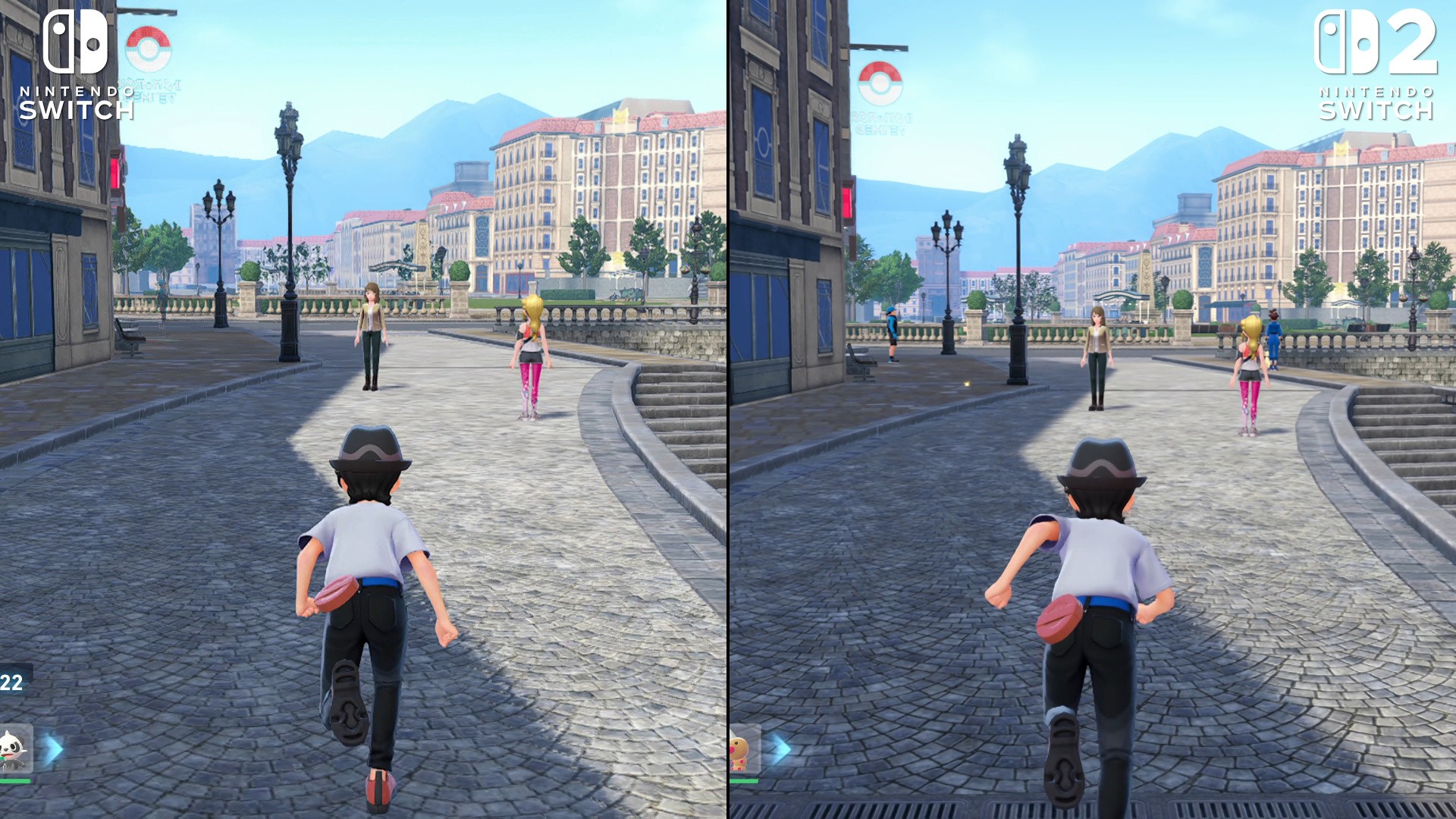 Sadly, the Switch 1 version's cutbacks in attributes like LoD and shadow resolution aren't enough to help it clear a steady 30fps. Our testing focused on early portions of the game, where sharp camera turns consistently dropped frame rates into the mid-to-high-20s, and we're unsure whether later battle zones and more powerful Pokémon will be even harsher to its performance cadence. Switch 2, conversely, doesn't appear to break a sweat in maintaining a flat 60fps frame rate, and it even exceeds the Switch 2 patch of Pokémon Violet/Scarlet on that front.