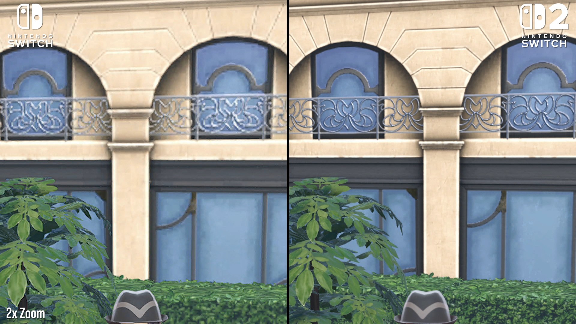 In terms of resolution, Legends Z-A's Switch 2 version actually renders a lower base number of pixels than Switch 1, coming in at 792p to 828p in docked mode compared to the older console's dynamic resolution count typically running near 864p. However, Switch 2 is the clear winner on this front, thanks to its clean use of Nvidia DLSS to upscale to 1440p. This delivers a far more pleasing pixel presentation than Switch 1, whose raw pixels receive no anti-aliasing.