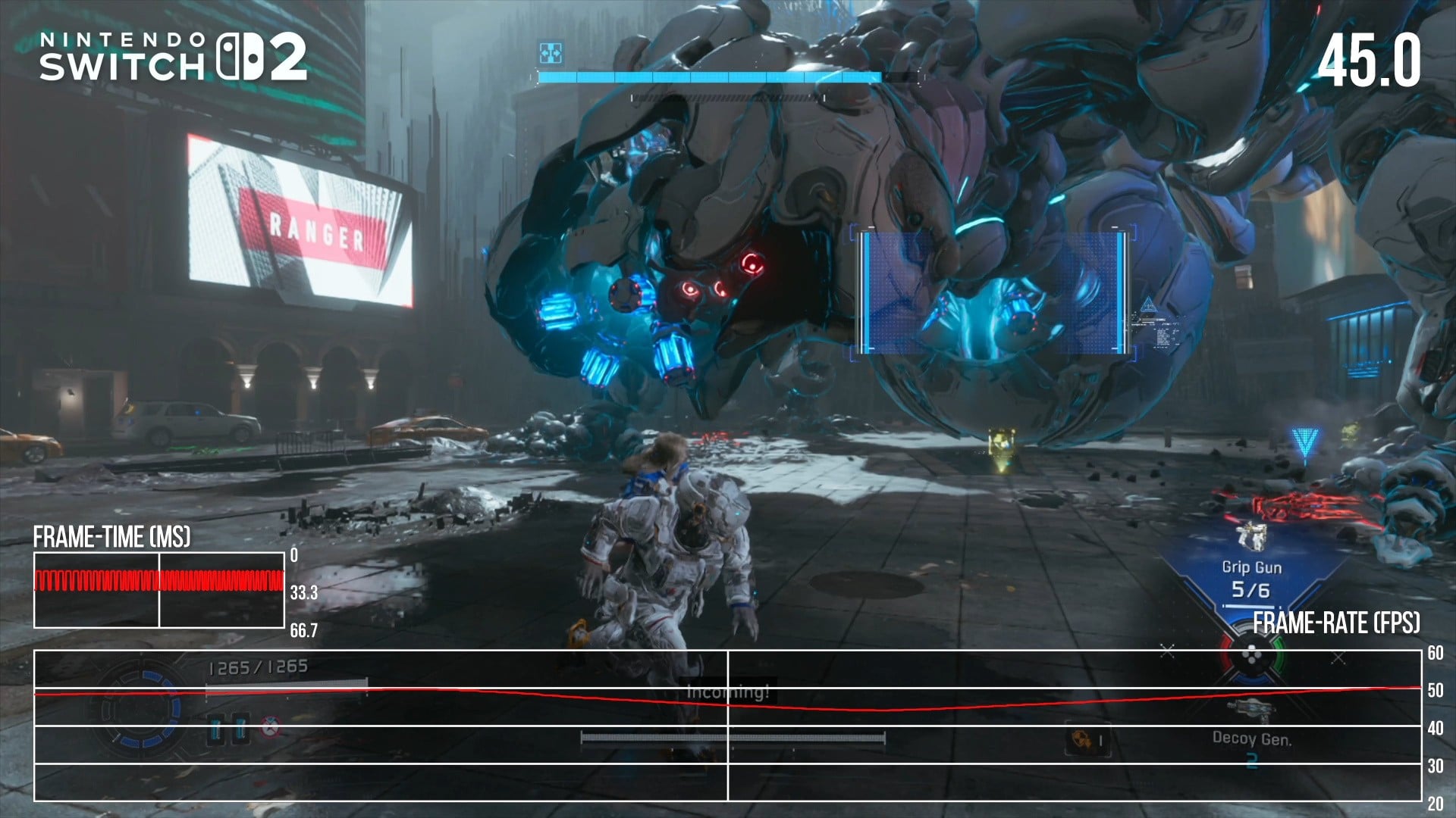 Performance is unfortunately less impressive than the image reconstruction. Capcom has opted for an unlocked frame-rate, which in a game like Pragmata leads to a highly variable frame-rate. In dense exterior sequences, the frame-rate often fluctuates between the 30s and 40s, and only reaches the 50s or 60s in more sedate interior scenes. Without a stable update rate, the game can feel unpleasant to play, and we would have much preferred at least the option of a lock to 30 or 40fps.
