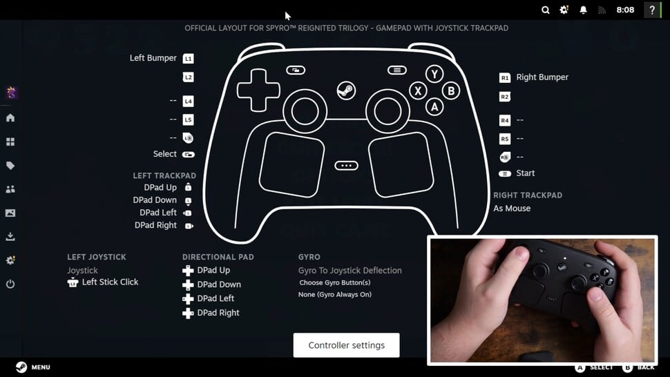 In conventional controller‑focused titles - eg racing games, shooters, and open‑world action games - the Steam Controller performs convincingly. Steam Input recognises the controller and generally loads workable profiles automatically, with community layouts built for the Steam Deck transferring neatly due to the near‑identical control schema. Titles built around Xbox or PlayStation pads, such as various racing games, Doom: The Dark Ages, Grand Theft Auto V and Cyberpunk 2077, all run without significant friction.